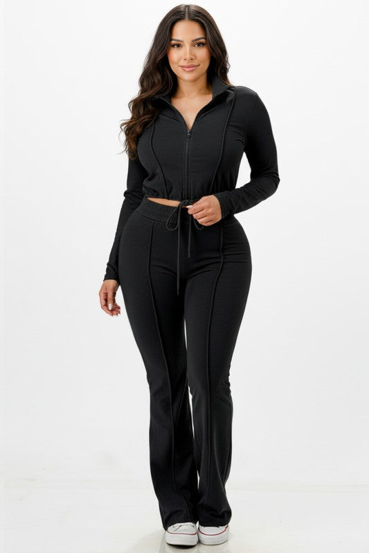 This chic 2 Piece Set is perfect for all your casual and active needs. The urban style is complemented by a drawstring waist and comfortable cotton fabric. Be effortlessly stylish while feeling relaxed and confident.
